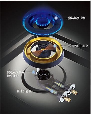 精炎燃烧系统,使用三重叠焰燃烧技术及隐藏式循环外补氧设计,使用高端炉头及燃烧器,136个出火口聚焦火力,八向增氧槽富氧低碳燃烧,360度多点双供气,平衡气压,火力强劲更稳定,纯正燃烧,晶蓝火焰。\u00A0