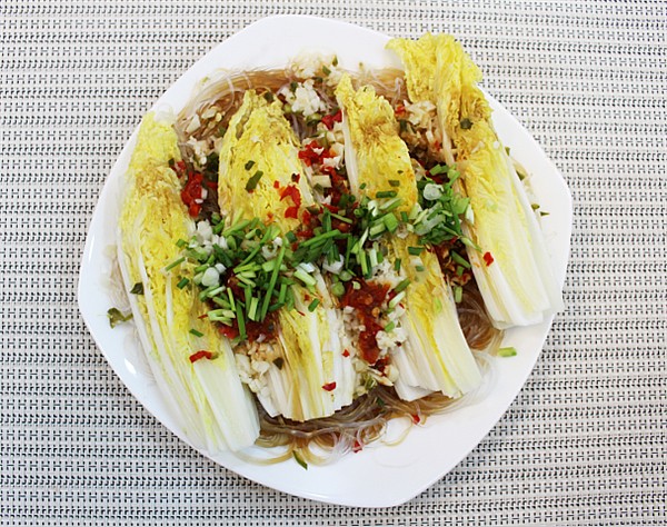 \u00A0 \u00A0 \u00A0 \u00A05、摆盘:把粉丝剪成段,摆在盘中,再把虾摆好;\u00A0