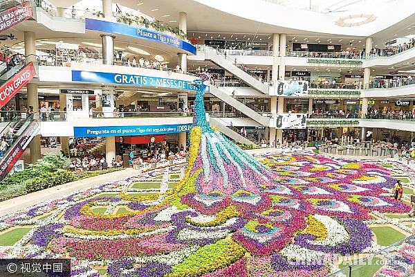 品牌加盟网 > 加盟资讯 > 哥伦比亚庆祝“鲜花节” 商场展出12米高由182万朵花打造的三维孔雀
