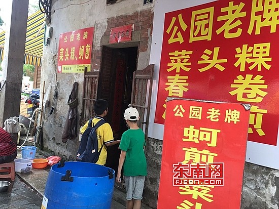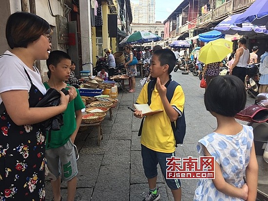 寻访中,一组小记者对古城的美食进行了了解,虽然不认得老店,但几经波折后,也找到了漳州的名小吃:海蛎煎、四果汤、粽子。经过,粽子店已有三十多年的历史了,海蛎煎,和四果汤的主人也经营多年。认真,细心的原材料调制,让这些美食广泛流传,深受周围居民的喜爱。