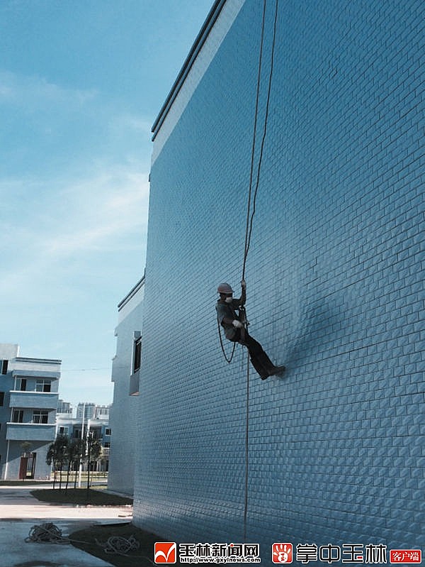 工人在喷刷外墙防晒漆