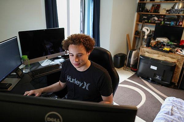 英国22岁网络工程师马库斯·哈钦斯(Marcus Hutchins)在家中卧室。 图来源彭博社