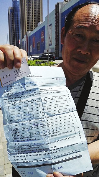 当天下午,记者在雁滩一家具城停车场见到了苏先生,只见他手中拿着购买地板合同书,还有交钱收据及代理商店员联系方式。“3000多元虽然不是很多,但对于我们工薪阶层来说,这也是血汗钱,本来这些钱是给家人看病用的,考虑到要收拾房子,就先交了地板款,没想到被骗走了。为了此事,我找几个部门维权,到现在已经3个多月了,还没有着落。”苏先生说。据介绍,苏先生家住在火车站附近,去年雁滩一家具城搞活动,他便选中了瑞嘉地板,准备将自家25平方米房子重新装修,并一次性交了3000元货款。就在安装时,家里人生病,只好将地板安装一事拖至今年3月。瑞嘉地板代理商店员满口答应,称“没问题,啥时候安装随叫随到”。当时,苏先生信以为真。等到今年3月份,他打对方电话一直无人接听,便到家具城打听得知,原来瑞嘉地板代理商早已撤柜,不知去向。苏先生找到家具城,工作人员让他自己去找代理商解决。