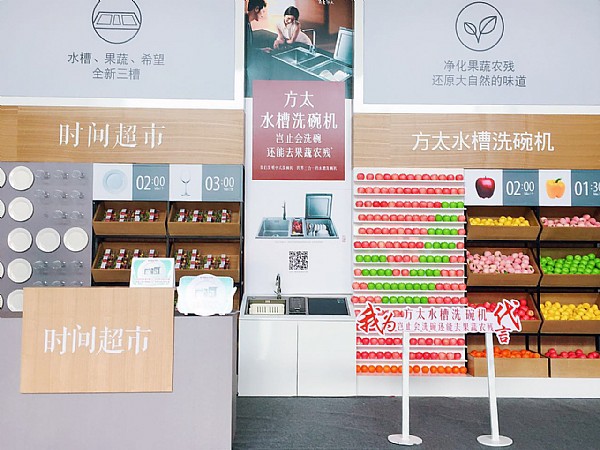 最抢眼的莫过于入口处的“时间超市”了!方太的这所超市,不贩卖零食百货,只拥有时间碎片。一般情况下,2-6口的家庭,餐具多至20多件,餐餐要洗,很是伤神。方太水槽洗碗机Q6,帮您节省更多碎片化时间,重拾生活的小确幸。