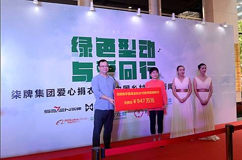 由柒牌联合壹基金、阿里公益共同发起“绿色型动,与爱同行”公益捐衣活动于2016年6月17日上午10点在柒牌集团举行。柒牌集团常务副总裁洪炳文宣布将通过壹基金为来自14个省市自治区、500多所乡村学校的5974位乡村教师捐赠1.47万件服装,市场价格超过947万元。柒牌集团常务副总裁洪炳文、电商事业部王振华、品牌运营管理中心林骞以及壹基金会渠道参与总监舒敏、阿里巴巴集团社会责任专家明宏伟与来自全国的媒体代表一起参加了本次捐赠活动。