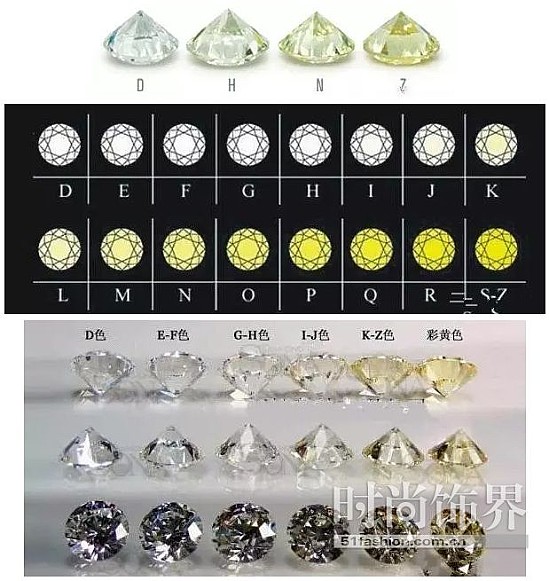 常见的钻戒颜色多为无色系列,即无色-浅黄色系列的钻石。颜色等级,也常被称为钻石的白度,常用英文字母从D、E、F、G、H、I…Z来表示,其中D色代表最好的颜色,颜色级别往后依次变黄。由于I级以下的钻石肉眼可见黄色调,影响钻石外观,故挑选时建议挑选I级以上的钻石。