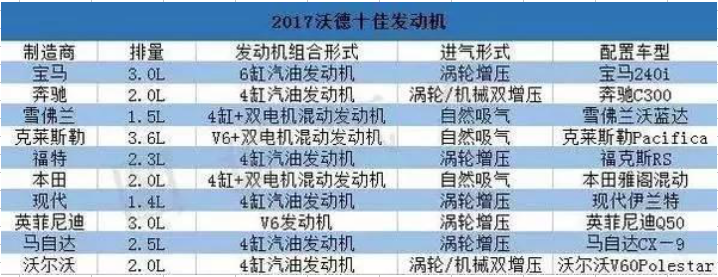 原标题:2017沃德十佳发动机出炉了,国内哪些车型有匹配?
