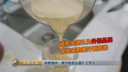 第二测,国外产品出汁率的猫腻想必大家已经看明白。但一些不明真相的消费者,仍然会对国外品牌抱有偏爱,比如《消费主张》栏目里的这位杨先生,他认为:外国品牌榨出来的果汁更营养。