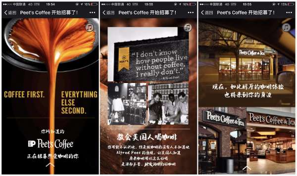 这两天,不少饮品界人士、咖啡爱好者的朋友圈应该都流传着一个用 MAKA 制作的 H5 页面,内容是 Peet’s Coffee 在中国的招聘信息。