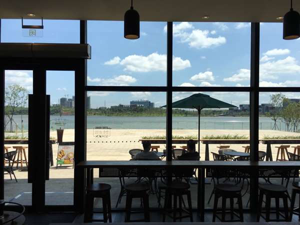 这家目前成都最南端的星巴克店,于今年6月底新近开张,座落于精英汇聚的成都科学城,远离喧嚣的市区,静静地眺望着平静的兴隆湖。从天府广场出发,驱车沿天府大道一直往南,途经武汉路、杭州路、宁波路、福州路,你不得不穿越“大半个中国”才能一睹她的芳容,品尝到一杯地道的冷萃咖啡。但是如果你想通过手机导航前往的话可能会失望的,因为这家星巴克现在在地图上还暂时搜寻不到。
