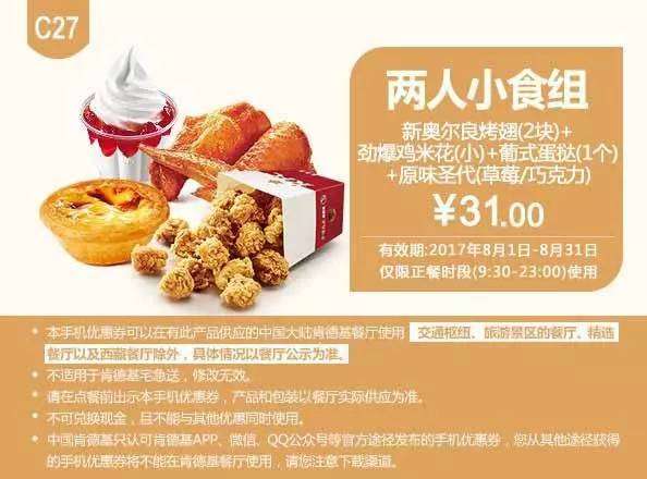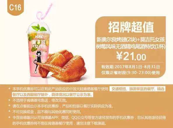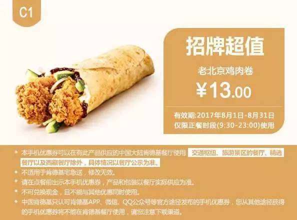 原标题:肯德基8月最新优惠券(8.1-8.31),全国通用,直接微信出示即可使用!