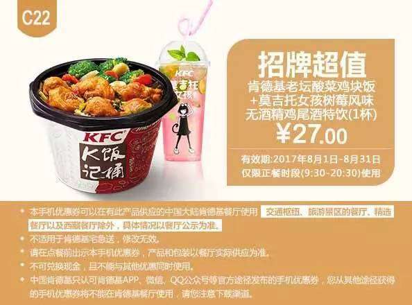 ? 有效期:2017年8月1日至2017年8月31日,仅限正餐时段(9:30-23:00)使用。