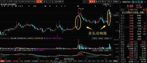 4,涨停双响炮并不要求全部都是涨停板;只要是大阳线都是有效的;但是如果都是涨停板的话;后市爆发力度更强;上涨幅度更大。