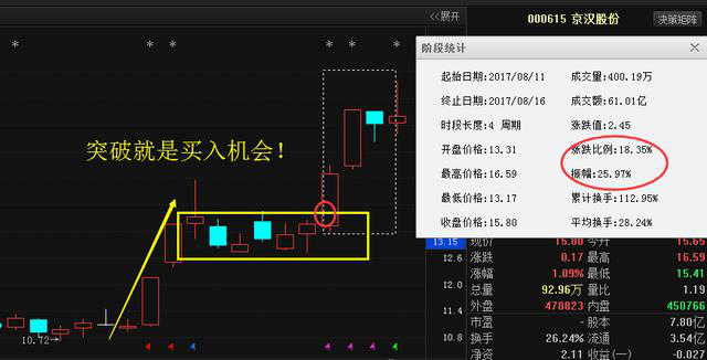 在讲解潜力股之前呢?我们先来回顾在朋友圈,股市找我,通过“一分钟选股法”选出来的牛股的真实案例,可供参考学习,先来看一下:京汉股份(000615)