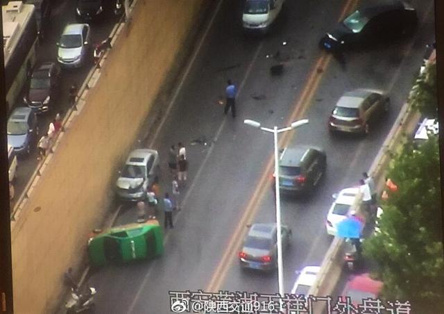 西安玉祥门地下通道四车相撞 撞碎残渣满地都是