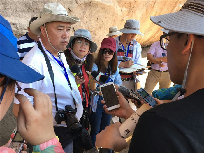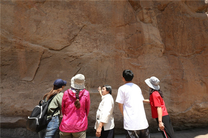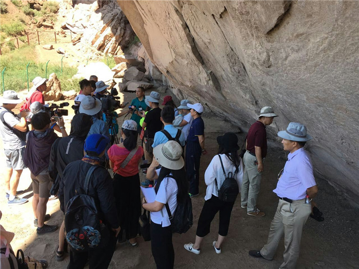 在随后召开的新疆呼图壁“天山康家石门子岩画与西王母起源”学术研讨会上,二十多位海内外专家提出了各自的观点,大家普遍认为:西王母作为在那个时期里某一个地方“当家作主”的女性,跟新疆呼图壁康家石门子岩画中的女神形象相对应;岩画所表现的遥远的女神崇拜、图腾寓意和巫术仪式,除了岩刻图像,其他早已沉埋于不可复现的历史岁月之中;它们具体的形态、内容、形式和传播影响究竟如何?唯有依托岩画图像来帮助我们去追索探寻,期待早日揭开岩画中远古时代女神的神秘面纱。(摄影:吕伊晗)
