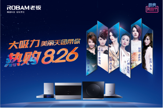 在这个火热的夏天,美丽天团:尚雯婕、薛凯琪、萨顶顶、徐怀钰、王蓉、金莎将亲临老板电器新品发布会现场,用歌声开启老板电器下半年首场全国性大型团购活动——“热购8.26”。
