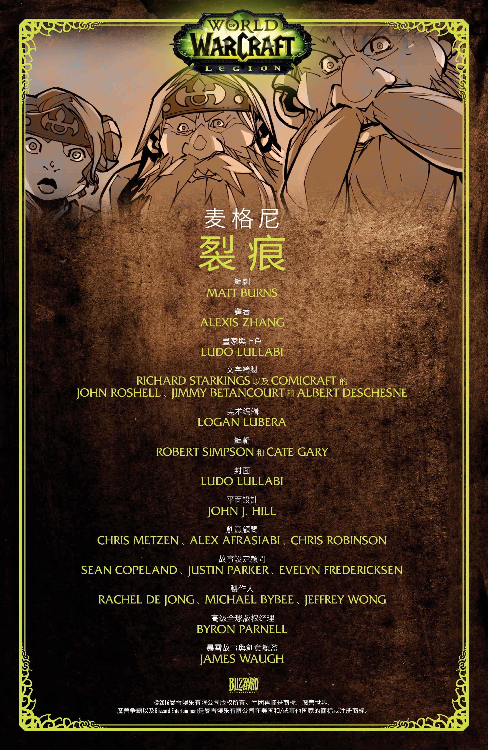 四年之前,矮人国王麦格尼·铜须为了寻找保护这个世界的方法受到了诅咒,在旧铁炉堡的中心变成了一座钻石雕像。在《军团再临》首部电子漫画:《裂痕》中,他将从沉睡中醒来,面对危机四伏的黑暗时代。然而他的女儿茉艾拉能不能放下过去的痛苦,原谅麦格尼,帮助他团结她的人民呢?