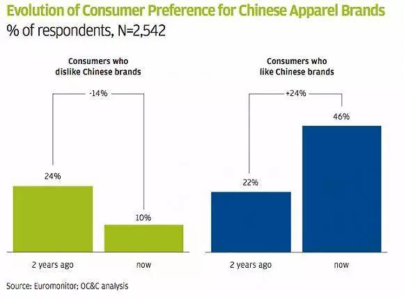 咨询公司欧晰析企业管理咨询(OC&C)发布报告称,从2011年到2016年,中国消费者对本土品牌的好感度从几年前的22%上升到了46%。