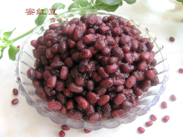 红豆还有补血,补铁的功效,多吃一些对身体有益,同时红豆还有补肝的作用,总起来说,多吃红豆有益身体。。。这款蜜红豆简单好做,很很好吃呢。。。