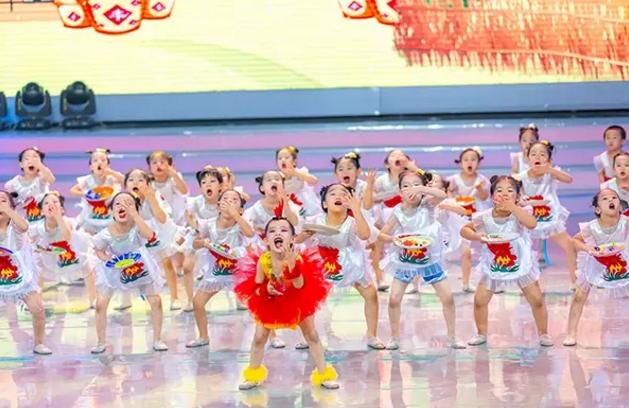 俗话说“台上一分钟,台下十年功”,这次参加演出的小朋友都在红黄蓝儿童艺术团参加了专业的学习,舞蹈基本功扎实。儿童艺术团邓燕玲团长介绍:“孩子们的排练只有不到2个月,但是每一个宝宝都非常刻苦的练习,为了增加舞蹈的创意性和趣味性,每一个盘子都是红黄蓝的老师们带孩子共同绘画并装饰的。”舞蹈以盘子为创意点,在盘子上绘画出食物的图案,让孩子们从学习舞蹈表演的过程中更能学会不挑食、不浪费粮食的好习惯。这种通过创意寓教于乐的形式获得了此次决赛评委央视少儿频道主持人“毛毛虫”老师的好评。