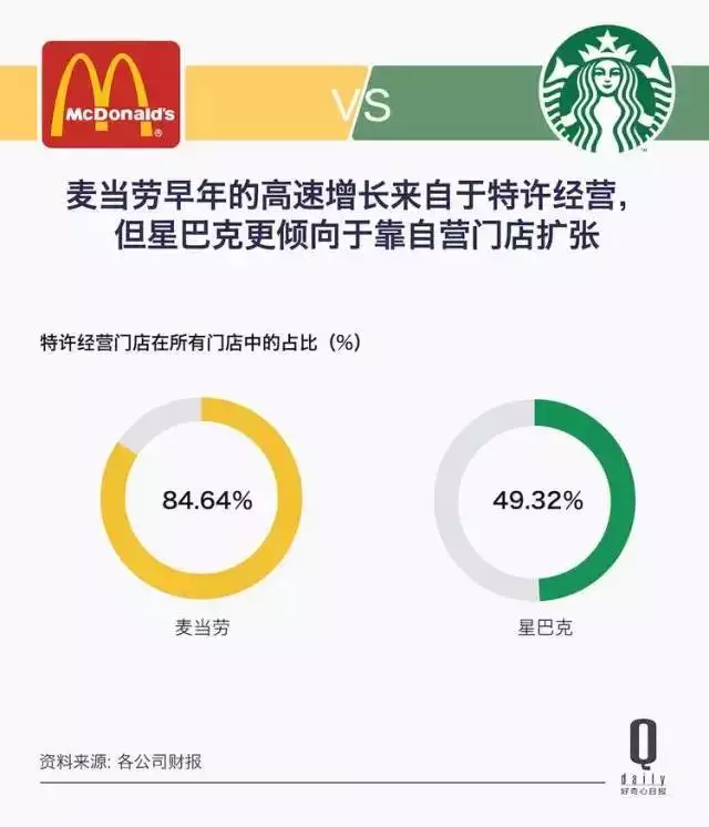 麦当劳要买地,星巴克都是租赁,这让自营模式的星巴克同样能够快速扩张。