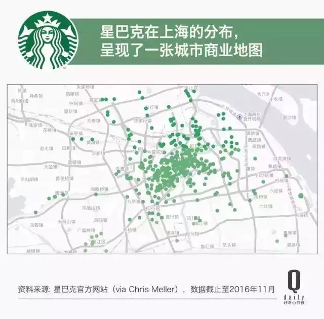以目前星巴克在全球布局最密集的城市之一上海为例:目前近 500 家门店已经覆盖整个市中心、以及后期开发出来的数个城市副中心。
