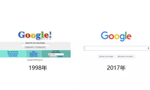 最重要的例子是\u00A0Google。Google 1998\u00A0年页面长这样,2017\u00A0年页面长这样,由消费者加入的入口越来越简单,Google\u00A0越来越聪明。