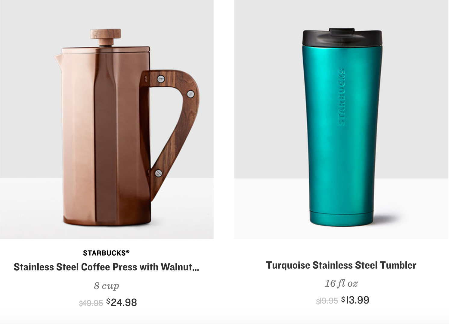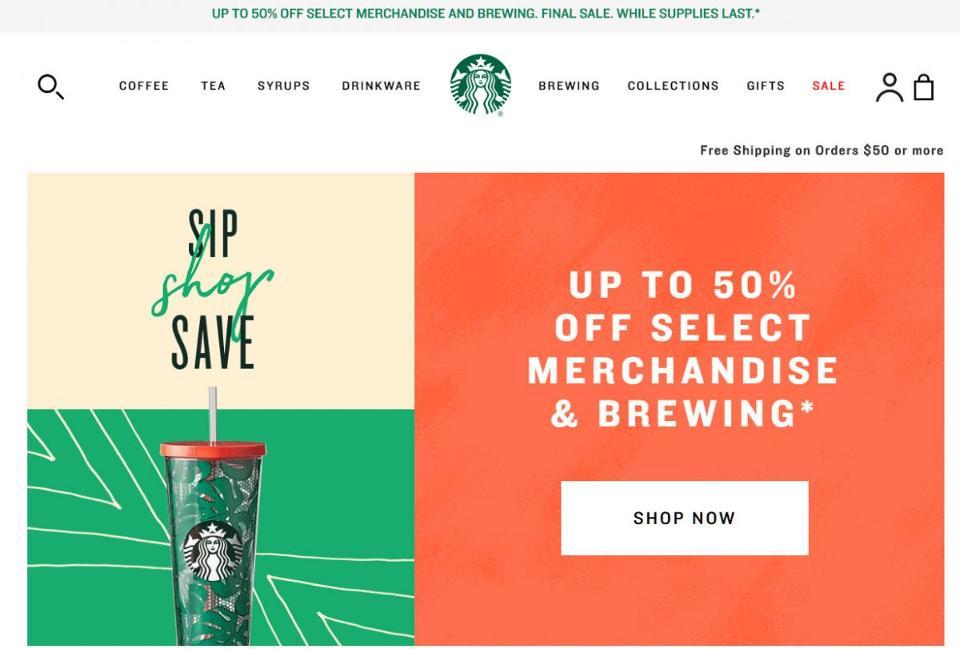 这个存在了7 年的网站在首页放了巨大的“Sale”标志,进行“部分商品低于 5 折”的清仓促销。不过在它被关闭后,北美消费者还是能从第三方零售店以及亚马逊上买到咖啡豆、马克杯和咖啡壶等。
