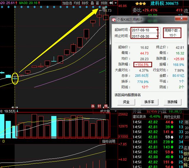 建科院是本人在8月10号专栏中用三步擒牛法选出,是属于次新股,该股经过前期震荡行情之后,主力开始洗盘,近期股价回踩支撑,VOL成交量也在持续放量,说明主力资金是持续流入的,果断选出此股,选出之后一路飙升,12个交易日涨幅超过了119%,当然是本人专栏的粉丝,只要是及时看了专栏文章,学习了本人“三步抓妖”的朋友,都是抓到了这波。想学习此类选股方式的粉丝朋友去找本人查看,逐梦都有详细的讲解,如果你看了,对个人选股能力肯定是有不小的提升。