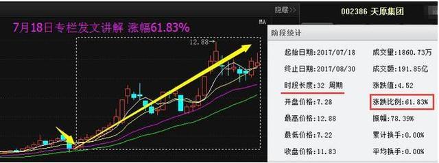 天原集团是本人在7月18号,专栏中用涨停复制战法选出,该股经过前期震荡行情之后,主力开始洗盘,近期股价回踩支撑,砸出了黄金坑,VOL成交量也在持续放量,说明主力资金是持续流入的,果断选出此股,32个交易日涨幅超过了61%,当然是本人专栏的粉丝,只要是及时看了专栏文章,学习了本人“涨停复制战法”的朋友,都是抓到了这波。需要的朋友可以加月落微信号:【sun78618】我告诉你怎么跟好的布局,如能相帮,必将鼎力相助!