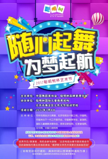 2017年7月8日,第十一届聪明树杯“随心起舞为梦启航”儿童艺术节即将在北京隆重开幕。本次活动以创新的内容与形式,强势的品牌力量,确保每一位少年儿童都能参与其中,为有才艺的儿童提供更加多元化的舞台机会。