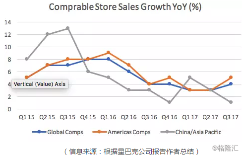 而在2017年第三季度之前,星巴克公司的每股盈利增长每个季度都是以两位数递增的。