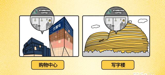 星巴克的店都开在购物中心和写字楼等人流密集的黄金地段。