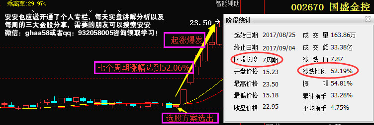 国盛金控是安安在25日通过选股方案选,该股前期从底部经过一小波拉升后,接着就是横盘震荡,而主力资金大量流入,股价却没出现了上涨,很明显是庄家震仓洗盘的手法,这种形态安安曾在专栏中发文讲解过。选出后一路上涨,7个交易日涨幅达到了52.06%,这就是在我的专栏学习的粉丝朋友才能够有机会抓到的利润空间。不在我的专栏学习的朋友肯定是没什么机会的。错过的朋友没有关系添加安安薇衅呺:ghaa58或qq:932058005查阅学习