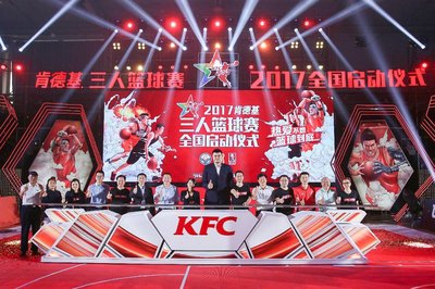 中国篮球协会主席姚明出席了在北京市清华附中举行的启动仪式,宣布2017年肯德基三人篮球赛正式启动,并表示:“三人篮球正进入蓬勃发展的新时期,该项目也被正式列入2020年东京奥运会的正式比赛项目。肯德基三人篮球赛让大家看到三人篮球在中国的未来潜力,也是发掘明日之星的平台。”