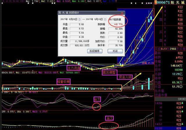 上图的阳光城000671是本人在用三步擒牛战法选出的,走势上来看此股前期也是处于震荡的走势,在经过主力洗盘的动作之后在底部震荡调整,下方的量能也是处于缩量吸筹的状态,本人在8.28日发现了此股的建仓良机,我发文时此股的主力资金在加速进场,下方的量能也在逐步放量,MACD,KDJ指标呈现金叉买入的信号,所以本人及时的发文讲解,截止目前短短的17个周期的时间也是收获了45.77%的涨幅。
