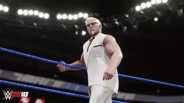 ( 游民星空)世界摔角娱乐WWE与餐饮连锁品牌KFC合作,引发的结果就是那个慈眉善目的白发老爷爷哈兰·山德士上校也将成为可操纵角色登陆《WWE2K18》,上校除了卖鸡块现在也能动手打人了!