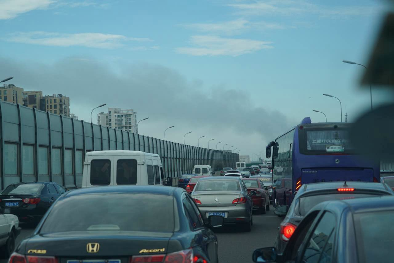 今天上午7点多,有多位网友报料,海曙段塘附近有地方着火。有网友车至宁波机场高架,见朝南方向冒出黑烟。