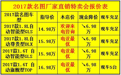 注:裸车销售,无任何附加费用,特卖会期间优惠力度比较大只面向个人不面向经销商,需本人携带本人身份证到店提车,车主与本人一致拍照存根可免费领取厂家赠送原厂装饰豪华大礼包。活动仅限5天结束后,恢复店内正常销售价格敬请谅解。