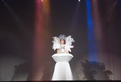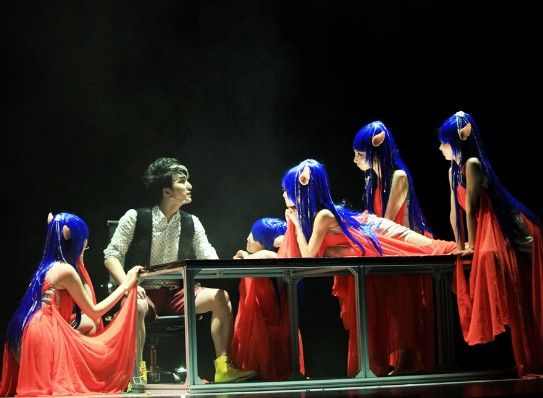 “2012年末,我在深圳观看了杨丽萍的舞剧《孔雀》,音乐与舞蹈交融的宏大场景让我震撼,同时也给了我无限启发。也许,时装可以和歌剧、舞剧、话剧等艺术形式结合。”如果音乐韵律遇上时装曲线,它们会碰撞出什么样的火花?这场演出让李飞跃萌生了创作时装音乐剧的想法,将歌剧、舞剧、话剧结合时装在舞台上进行表演,这开创了时装与舞台音乐剧跨界融合的先河。深圳服装行业协会会长沈永芳对李飞跃的大胆探索高度肯定,并鼓励粉蓝衣橱承办2013年中国(深圳)国际品牌服装服饰交易会开幕式晚会。