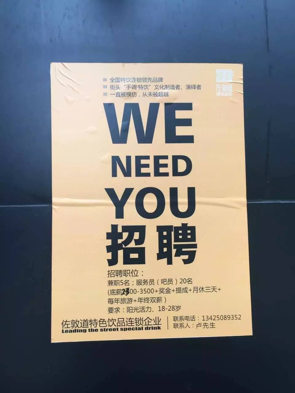 原标题:3500元/月!佐敦道饮品店招聘服务员