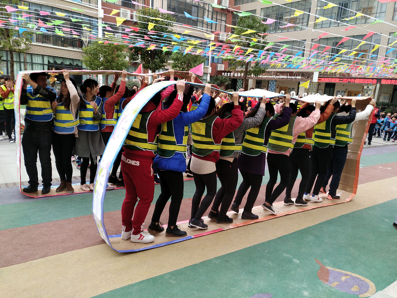 接着伴随着铿锵有力的“运动员进行曲”,孩子们手持五颜六色的拉彩旗,迈着整齐有力的步伐,喊着响亮的口号,身着统一定制的安全衣,神采奕奕地出现在运动场上。精心设计的运动游戏在鼓励孩子运动四肢,感受运动快乐的同时,更融合了幼儿园多元文化的特色,每个器械不仅巧妙的融入走、跑、跳、爬等幼儿必须发展的基本动作,还重点突出了安全运动的主题,各项比赛项目中有来源于蒙氏教育的走线线上运动、不仅凸显特色教育更体现了调节身心发展的健康教育,有休闲游戏打地鼠、斗智斗勇的“无敌风火轮”、考验在紧急情况训练孩子反应力的“百变防护衣”和红绿灯交通安全等运动项目。活动还设置了亲子游戏,在消防接力赛中,妈妈爸爸们和孩子一起接力消防栓,将安全意识传递。本次活动幼儿园还为每位孩子们准备了安全纪念品,并讲解在生活中的自救意义,精致的防火用具模型让孩子们爱不释手同时提高了自我保护能力。最后运动会以家园共唱《安全之歌》的形式将活动推向高潮。