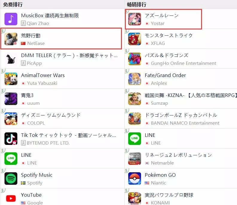 值得一提的是,2017年中国手游在日本市场取得了进一步的佳绩,《碧蓝航线》日前登上了日本App Store畅销榜总榜第一,《荒野行动》也在上线后拿下了免费榜总榜第二、游戏榜第一。