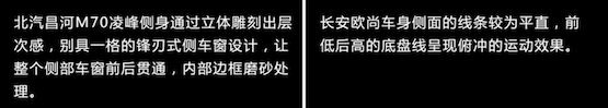 爱美之心人皆有之。当汽车工艺日臻完善后,颜值也成了购车首要考虑因素之一。作为MPV界的颜值担当,长安欧尚和北汽昌河M70略有不同。长安欧尚线条平直,从车头到车尾,从车身到细节,都透着简约干练。而北汽昌河M70则线条锐利,无论是车头的铲型凸起保险杠,还是侧身的多型凌峰设计,甚至车尾多维型面造型,都带来丰富的层次感,让整车看起来更硬朗逼人,大气时尚。