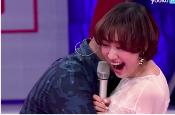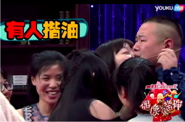 节目一开始,李咏问岳云鹏怎么样体现“贱”,小岳岳立刻抱住旁边的美女主持王冠,抱了近一分钟不撒手,还与王冠有了脸部接触。
