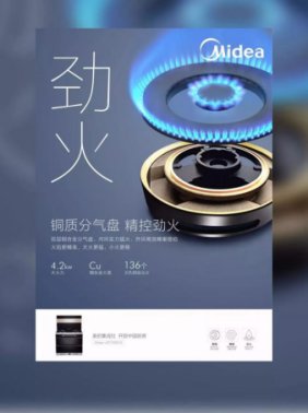 整个美的集成灶品牌视觉以“黑、灰”为主色调,辅以“金、蓝”,在体现沉稳大气的同时,不乏精致与亲和,向人们传递一种生活态度,烹饪是人与人沟通的桥梁,烹饪与食物一样美好。