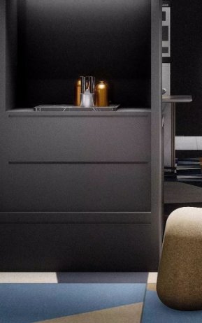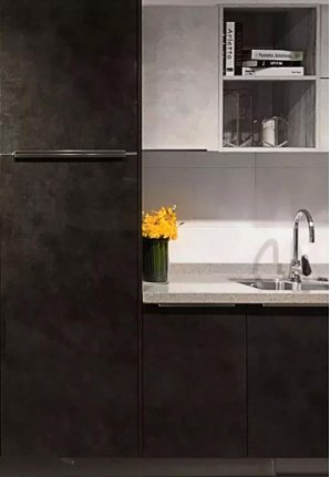 有别于其它厨房电器卖场店常规的暖色调,美的集成灶终端体验店以“黑、灰”的中性色为主,辅以少量木纹,让产品的高科技感与家居的亲和力同空间呈现得更为融洽。