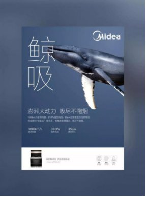 “鲸吸”、“螺旋”、“劲火”三大产品核心USP,用深海蓝底色配以“鲸”、“螺”等真实海洋生物画面,直观而生动地展现出产品大吸力、尽排烟、稳劲火的重要特征,科技而灵动。