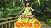 女子将水果蔬菜服装穿上街头 创意十足 武汉植物园流出了一组创意果蔬照片,花艺师脑洞大开,将水果蔬菜做成各种衣服。